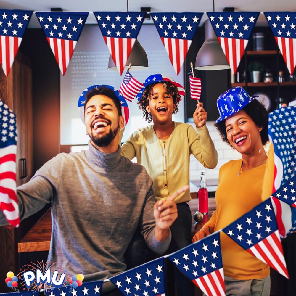 PMU 12 ft Banners Patriotic American Flag Pennant Banner | 4th Of July Patriotic Decorations | Fourth of July | USA Flag Pennant Banner | Easy to Hang Patriotic Party Decorations Pkg/3