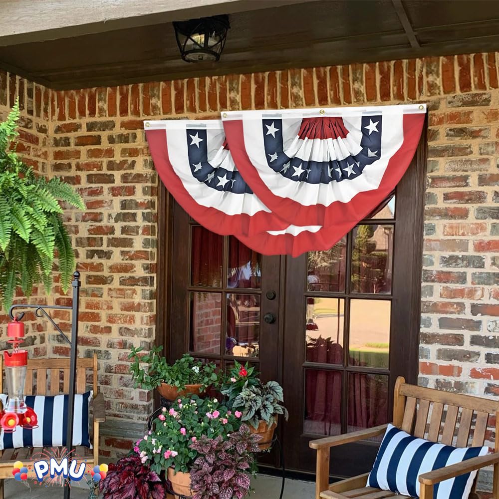 - โ ๐ ๐๐๐ ๐๐๐๐๐๐๐๐๐๐: American Pleated Fan Flag buntings for outside is carefully crafted from high-quality printing, bright-color and the colors are fade-resistant even in the harshest environments. We design and construct fabrics that are durable in the face of the sun, cold and rain. Suitable for outdoor use.
