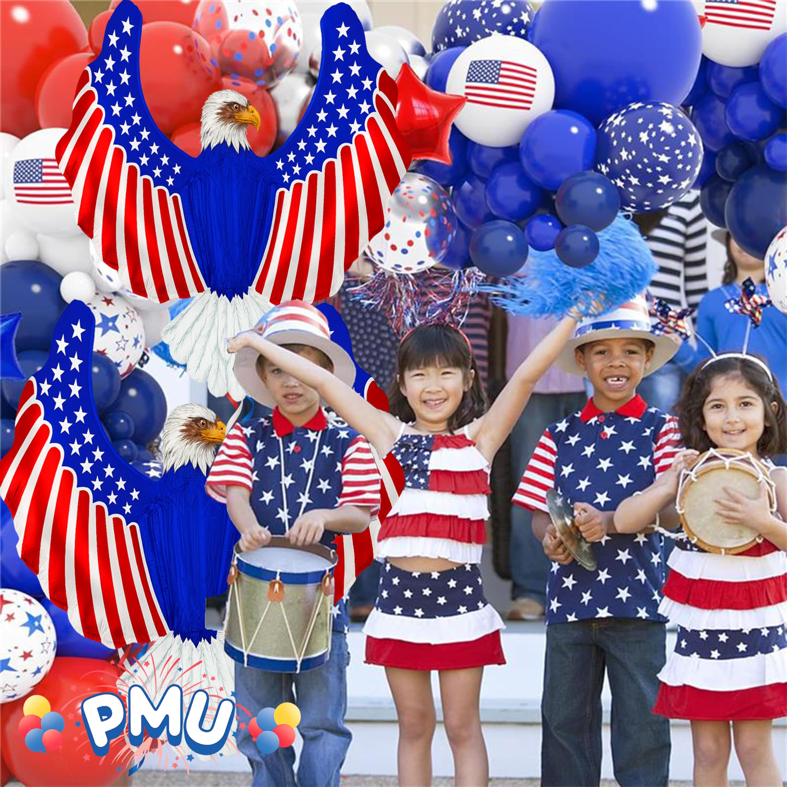 PMU 40 Inch Patriotic Eagle Balloon, American Flag Balloon, 4th of July Balloons, Independence Day Decorations, Patriotic Decorations, Eagle Mylar Balloons, Red White Blue, (5/Pkg) pkg/1