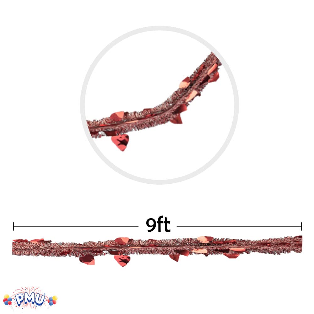 PMU 9ft Valentines Day Heart Tinsel Garland Red and White Metallic