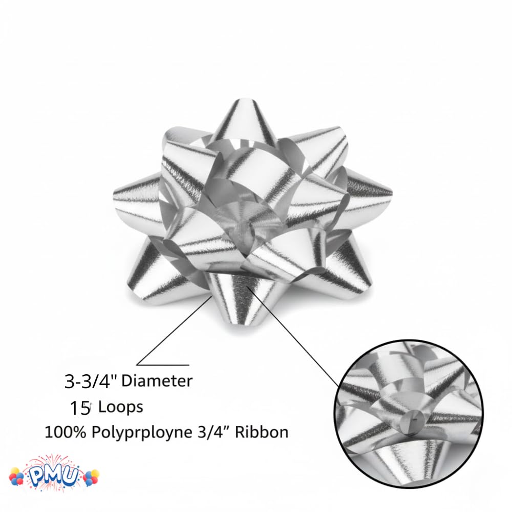 PMU Decorative Star Gift Bows 3-3/4 Inch Medium Metallic Silver (12/Pkg) Pkg/1