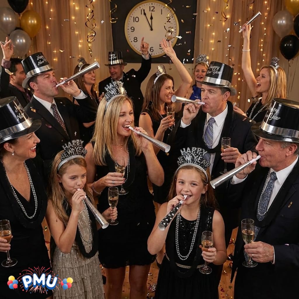 PMU New Year's Eve Party Supplies 2026 Silver Legend Illusion Party Kit Assortment for 25 persons - New Year's Eve Decorations Supplies, Outfits for Adults, Men and Women (25/psn) Pkg/1