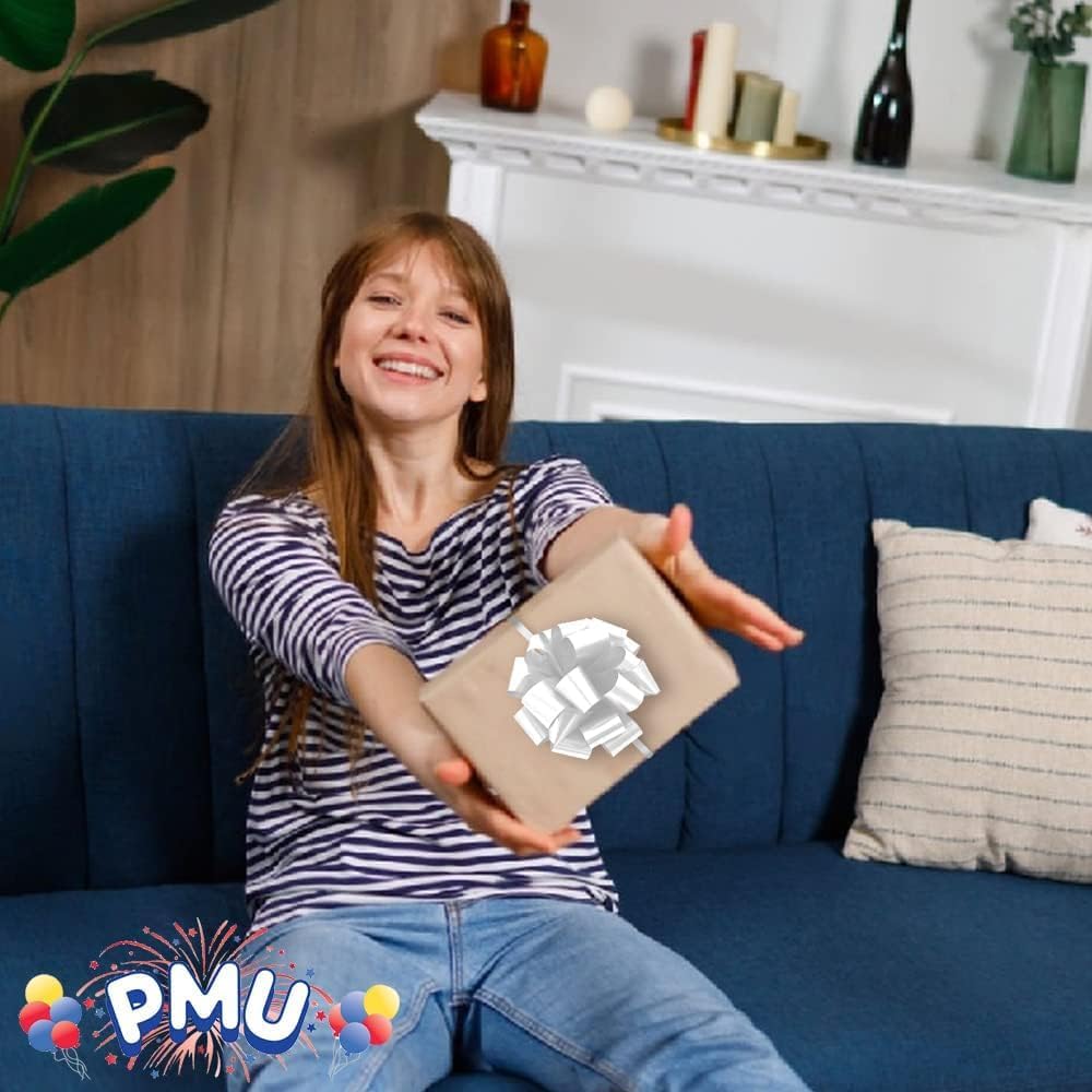 PMU Pom-Pom Pull-Apart - Pull Out Bows for Wedding, Birthdays & Anniversaries - Ribbon Bows for Flowers & Basket Decoration - Large Bow for Gift Wrapping - White 5 Inch 20 Loops (50/pkg) Pkg/1