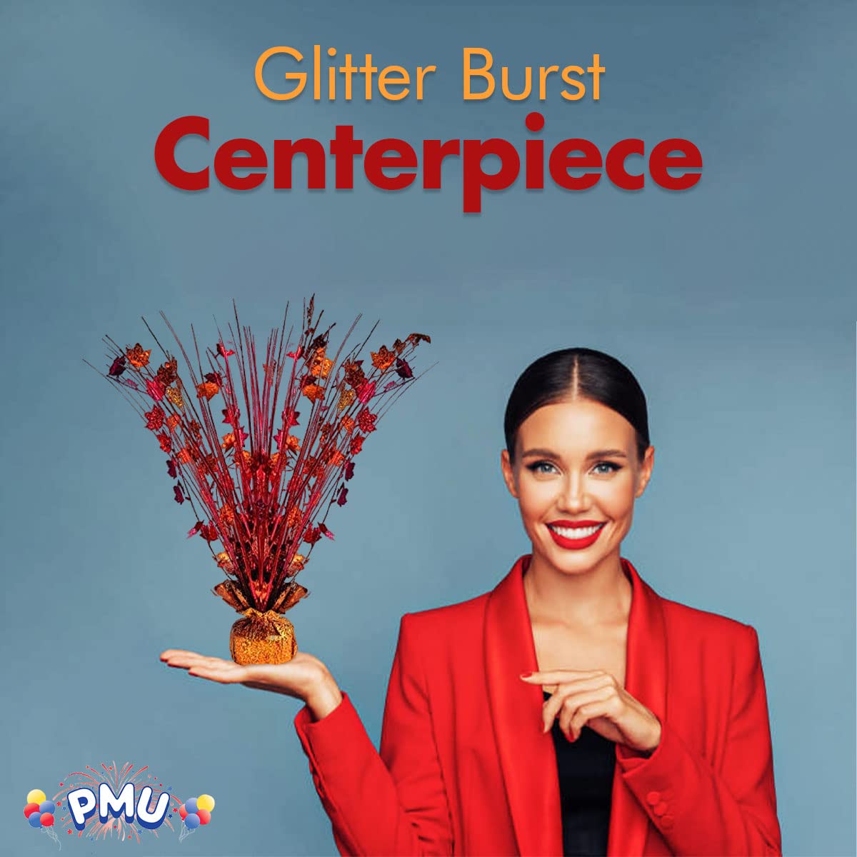 - GLITTER BURST CENTERPIECE: PMU fall leaves glitter burst centerpiece is adorned with leaf-shaped cutouts and charming Mylar-Foil accents. This balloon weight in this table centerpiece is just for creating a stunning fall-themed balloon bouquet. Just tie some foil and latex helium balloons together with curling ribbon then anchor them to this table centerpiece.